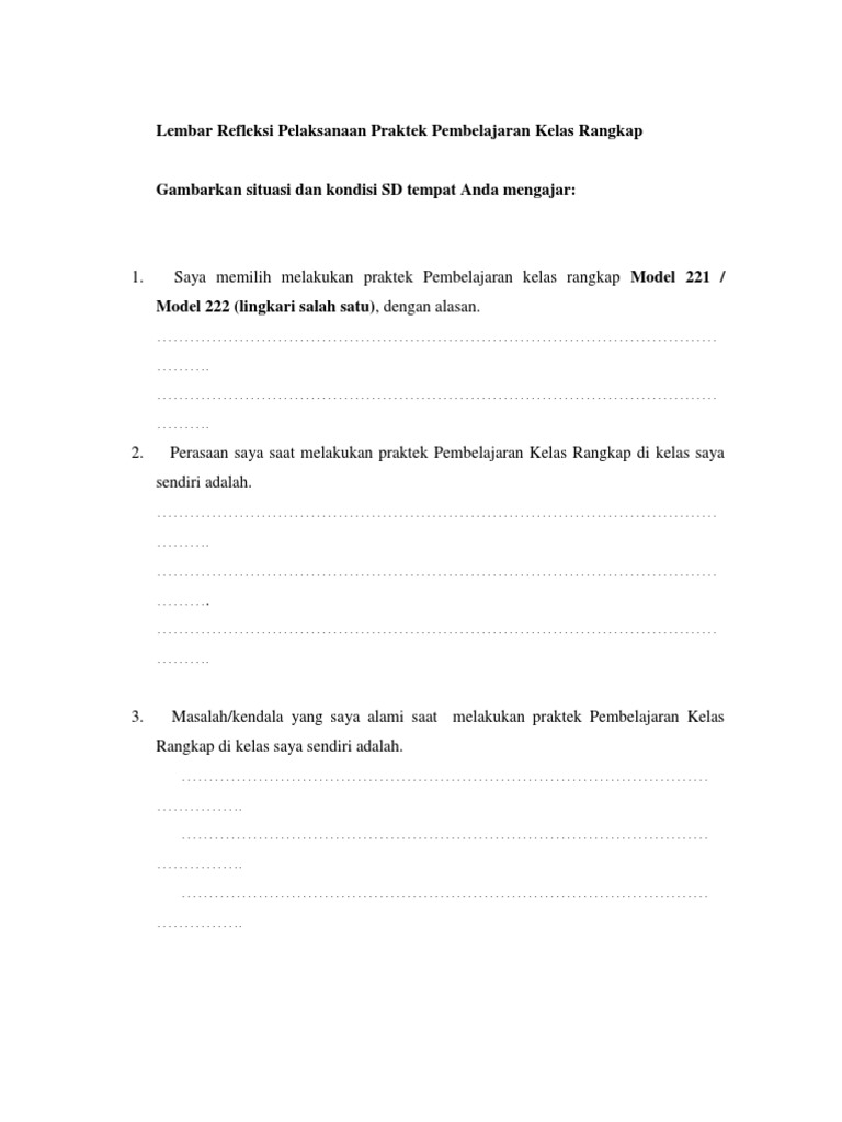 untuk "Contoh Pembelajaran Kelas Rangkap Model 222 : Doc Lembar Refleksi Pelaksanaan Praktek Pembelajaran Kelas Rangkap Bocah Rowo Academia Edu / Contoh pembelajaran kelas rangkap model 222."