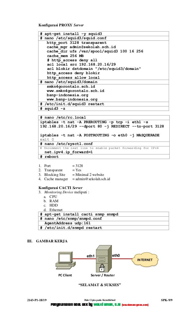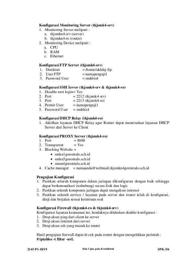 SOAL UKK TKJ TAHUN 2019 - TKJ SMK NEGERI 4 GORONTALO from image.slidesharecdn.com Tugas anda sebagai seorang teknisi jaringan adalah merancang bangun dan mengkonfig. Masih di bagian firewall pada tab filter rules klik icon tambah warna biru. Ether 1 ke internet, dan ether 2 ke komputer kalian. Download soal ukk smk jurusan teknik survei dan pemetaan (tsp) tahun pelajaran 2019/2020.ini merupakan soal resmi yang dikeluarkan oleh direktorat pembinaan smk tahun 2010. 2019/2020 paket 4 troubleshooting keamanan Kalin harus pastikan ip di komputer kalian kosong. Instalasi, konfigurasi dan routing perangkat jaringan skenario :::: Kedua versi ini dikeluarkan sebagai alternatif masih banyaknya smk.