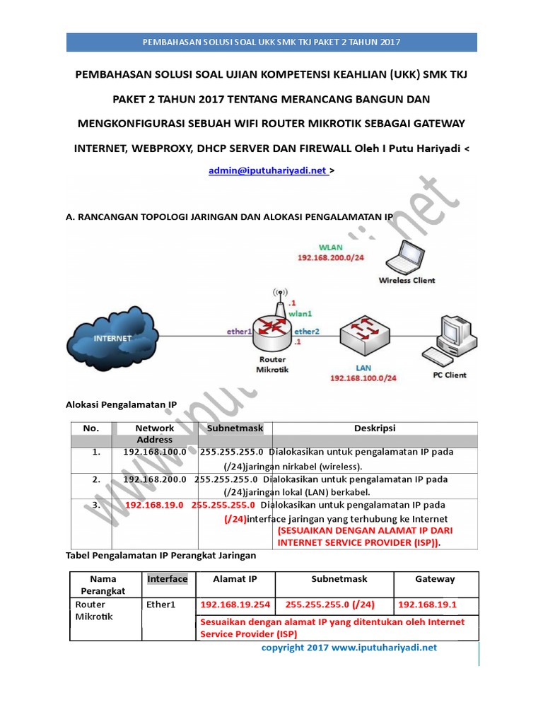 Pembahasan soal ukk smk teknik komputer dan jaringan tp. Soal ukk bisa di download langsung melalui halaman ini. Ether 1 ke internet, dan ether 2 ke komputer kalian. Pembahasan soal ukk tkj k13 paket 2 tahun 2019 dan contoh penilaian yang akan diterapkan pembahasan soal ukk tkj k13 dari soal paket 2 uji kompetensi keahlian teknik komputer dan jaringan tahun 2019 ini pernah saya sampaikan dalam kelas. Pembahasan soal ukk tkj paket 2 tahun 2019 mikrotik full lengkap, get notified about the latest hits and tendencies, so that youll be generally on top of the most recent in music in terms of your buddies.